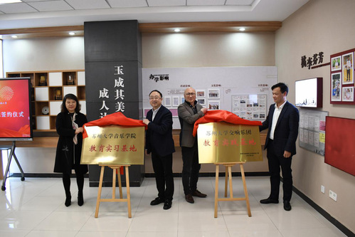 院长吴磊、副院长魏正启,相城区教育副局长缪芙蓉,相城高新区(元和街道)党工委委员王志强共同为“欧美精品-欧美无码中文-欧美无码在线 教育实习基地”和“欧美精品 交响乐团教育实践基地”揭牌。